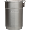 Enjoy delicious hot food straight from the campfire or camp stove with this tidy yet rugged cook kit. The stainless steel pot with locking handle is great for brewing coffee or heating soup. The vented lid even doubles as a strainer. When it’s time to eat. two insulated cups allow for sharing. To clean up. stack everything neatly inside to store. A slim profile means it can even fit inside your backpack webbing.